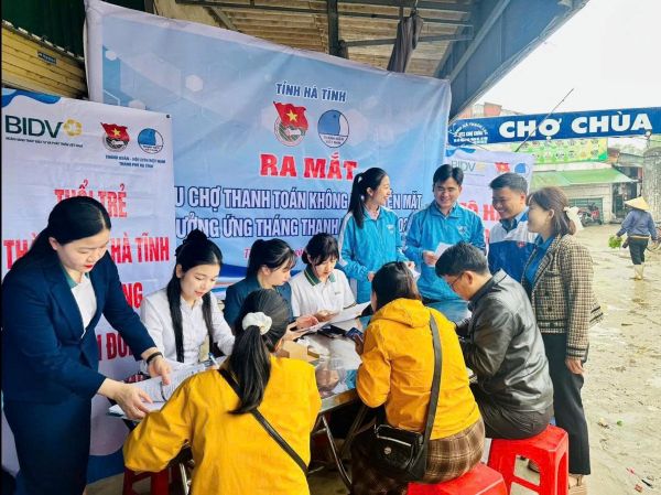 Ra mắt khu chợ thanh toán không sử dụng tiền mặt Phong trào “Bình dân học vụ số” tại Hà Tĩnh cũng được tuổi trẻ địa phương triển khai bài bản, hiệu quả, bám sát nhu cầu thực tiễn của người dân. Bên cạnh đó các hoạt động hỗ trợ người dân thực hiện cài đặt định danh điện tử và hỗ trợ người dân giải quyết thủ tục hành chính luôn được duy trì tại các địa phương trên toàn tỉnh