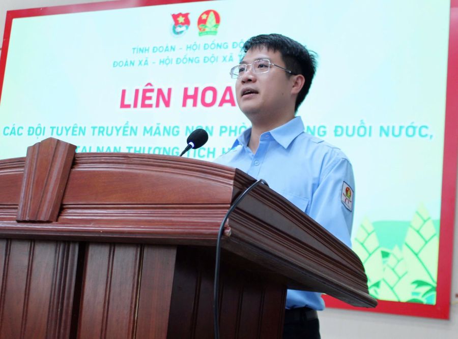 Đồng chí Nguyễn Viết Hải Đăng - Phó Bí thư Tỉnh đoàn, Chủ tịch Hội đồng Đội tỉnh phát biểu Liên hoan có 05 đội tuyên truyền măng non tham gia, cùng nhau tranh tài qua 2 phần thi: Phần thi Hiểu biết và phần thi Tài năng tuyên truyền.