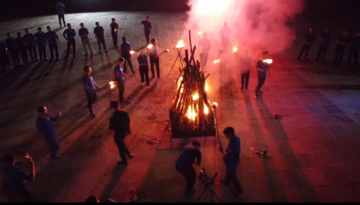 (các học viên cùng nhau đốt lửa trại)