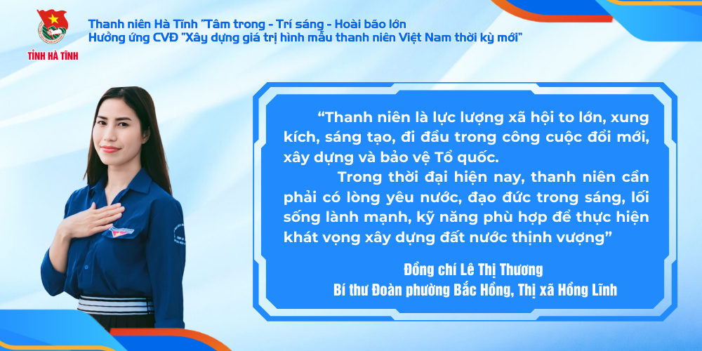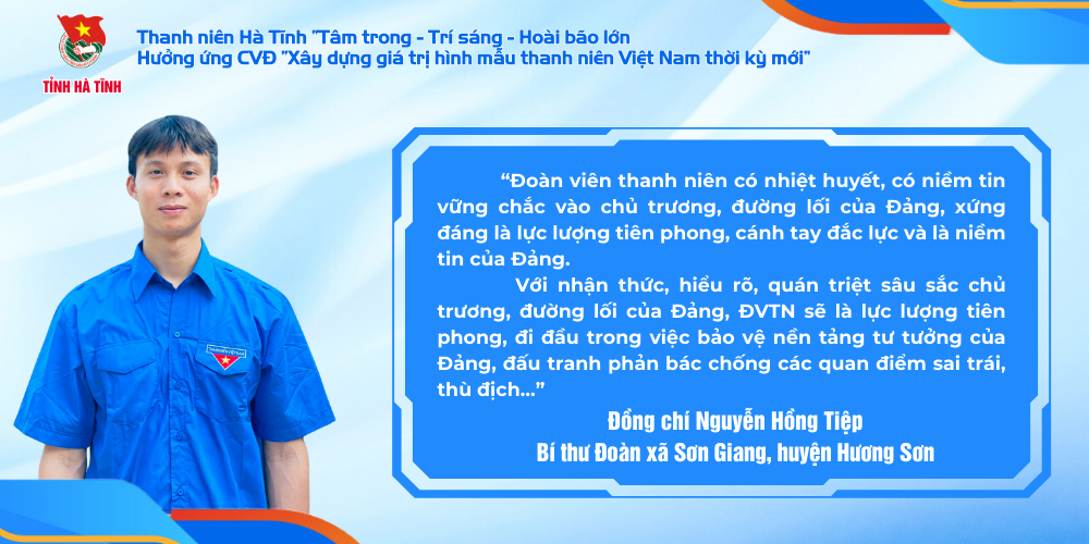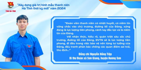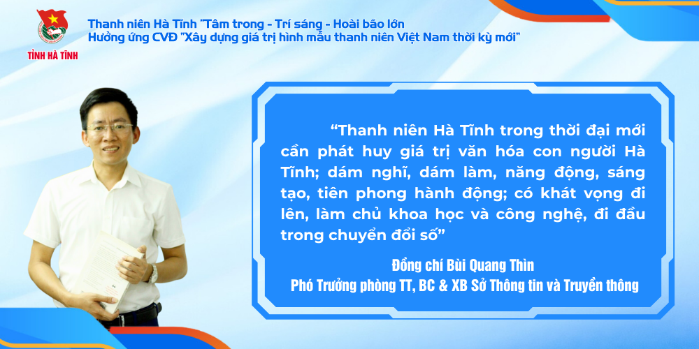 Để cuộc vận động đi vào đời sống, Ban Thường vụ Tỉnh Đoàn xây dựng các bộ công cụ tuyên truyền các tiêu chí định hướng “Xây dựng giá trị hình mẫu TN Hà Tĩnh thời kỳ mới” như infographic, tờ rơi, apphic. Bên cạnh đó, xây dựng bộ infographic về những thông điệp, chia sẽ của cán bộ, đoàn viên, thanh niên trong việc cụ thể hoá, hiện thực hóa các tiêu chí của cuộc vận động, từ đó tạo tính lan tỏa, tinh thần, trách nhiệm và sự quyết tâm cao của đoàn viên, thanh niên về xây dựng một thế hệ thanh niên thời kỳ mới nhiều khát vọng, lý tưởng.