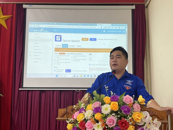 Đồng chí Phan Sắc Biển trao đổi chuyên đề tập huấn sử dụng phần mềm Canva, FPT.AI để thiết kế các ấn phẩm truyền thông Tại Chương trình, 05 đoàn viên có sản phẩm truyền thông đẹp, sáng tạo nhất đã được Ban Tổ chức tặng quà.