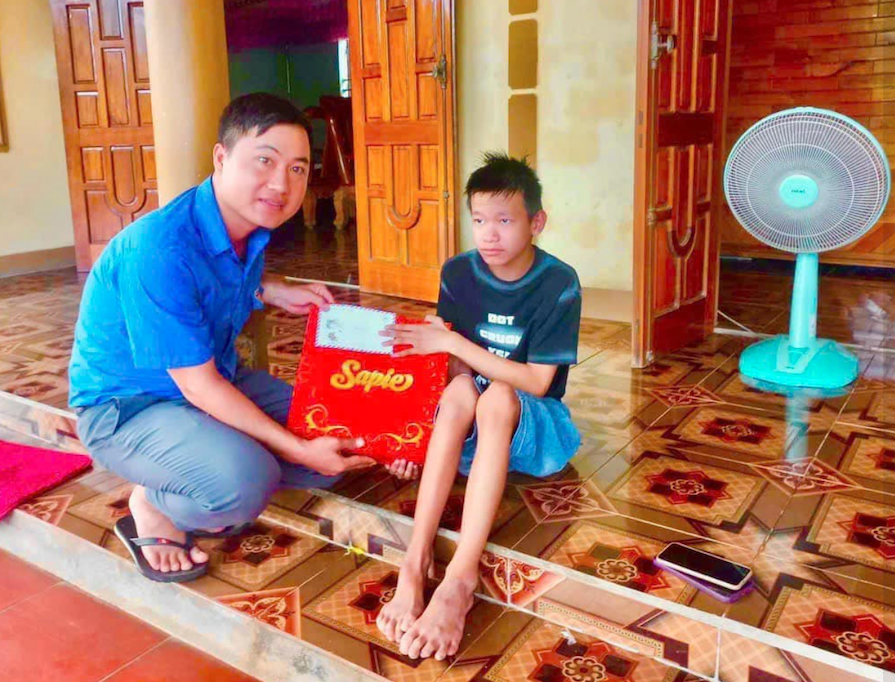 Huyện đoàn Vũ Quang trao quà cho anh Nguyễn Trần Trung (Xã Ân Phú) là thanh niên chậm tiến, yếu thế