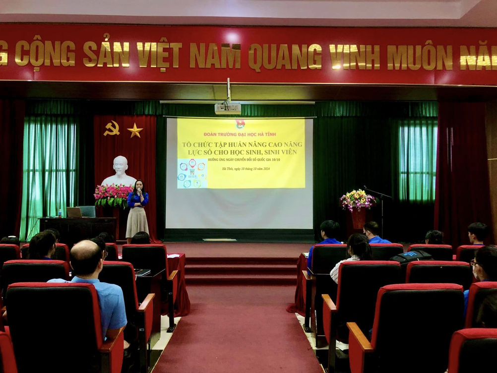 Ngày 10/10/2024, hưởng ứng ngày Chuyển đổi số quốc gia 10/10, Đoàn trường Đại học Hà Tĩnh tổ chức tập huấn nâng cao năng lực số cho học sinh sinh viên trong bối cảnh chuyển đổi số giáo dục đại học cho sinh viên HTU