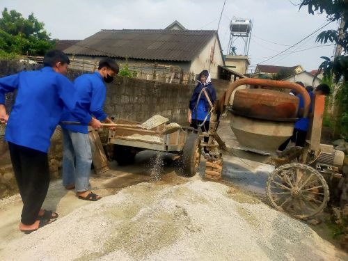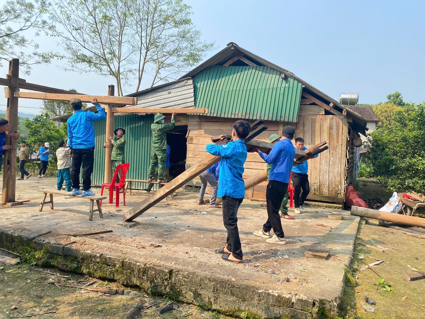 Hình ảnh đoàn viên hỗ trợ sửa chữa nhà cho hộ dân thôn 5 Huyện đoàn hỗ trợ tháo dỡ, sửa chữa và xoá nhà tạm cho các hộ gia đình khó khăn, góp phần cải thiện điều kiện sống cho nhân dân, tổ chức trồng cây xanh và phát quang bụi rậm, tạo cảnh quan môi trường sáng – xanh – sạch – đẹp.