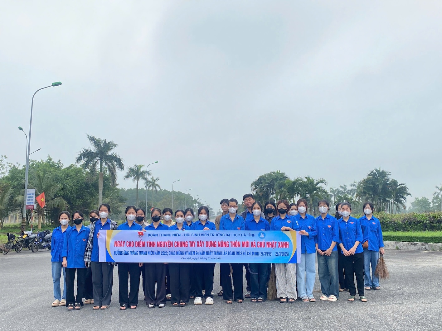 Hưởng ứng phong trào “Ngày Chủ nhật xanh” do Trung ương Đoàn phát động, sáng ngày 23/3/2025, tuổi trẻ Hà Tĩnh đồng loạt ra quân hưởng ứng Ngày Chủ nhật xanh với khí thế sôi nổi, lan tỏa tinh thần xung kích, tình nguyện vì cộng đồng. Các hoạt động được triển khai đồng loạt tại 14 huyện, thị, thành đoàn, đoàn trực thuộc trên toàn tỉnh với nhiều nội dung thiết thực, ý nghĩa.