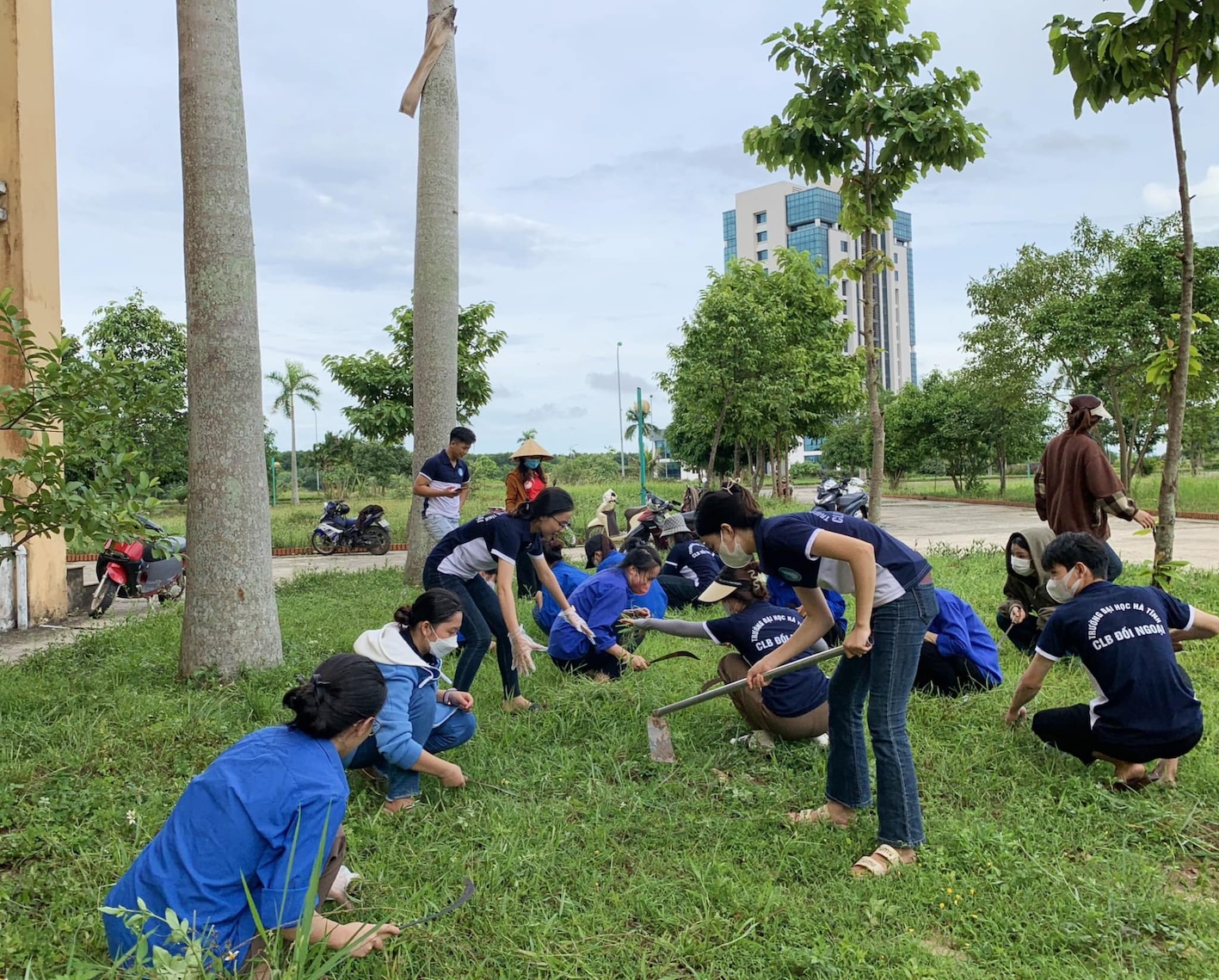 Hơn 50 sinh viên đã chia thành các đội hình chuyên trách: đội thu gom rác thải, đội vệ sinh cảnh quan, đội tuyên truyền môi trường, đội trồng cây xanh… Mỗi đội hình đảm nhận những nhiệm vụ cụ thể trên từng khu vực. Tại khu vực sân trường và giảng đường, sinh viên đã tập trung quét dọn, vệ sinh bồn hoa, sắp xếp lại khu tự học, xử lý rác thải tồn đọng, khơi thông hệ thống mương thoát nước nhằm đảm bảo môi trường học tập sạch sẽ, thoáng mát.