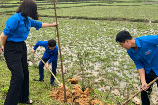 Đồng chí Nguyễn Hải Tú - Bí thư Đoàn các cơ quan Đảng tỉnh cùng lãnh đạo xã ra quân trồng cây xanh