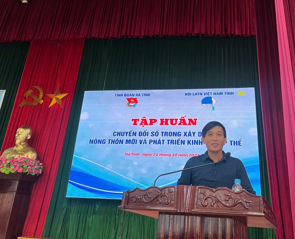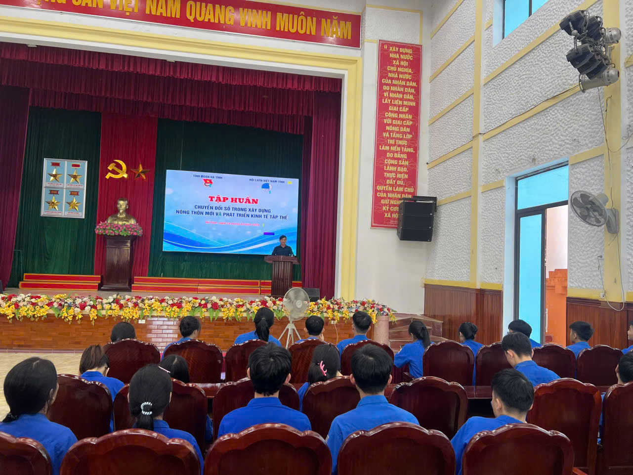 Ngày 21/10/2024, Tỉnh đoàn, Hội LHTN Việt Nam tỉnh tổ chức chương trình Tập huấn Chuyển đổi số trong xây dựng nông thôn mới và phát triển kinh tế tập thể năm 2024. Tham dự Chương trình có các đồng chí đại diện Tỉnh đoàn, Liên minh HTX tỉnh, Thường trực Huyện đoàn Cẩm Xuyên, đại diện Văn phòng Điều phối NTM huyện Cẩm Xuyên và gần 100 cán bộ, ĐVTN, chủ các mô hình kinh tế thanh niên và thành viên các đội trí thức trẻ tình nguyện tham gia xây dựng NTM trên địa bàn các xã Cẩm Mỹ, Cẩm Quan - huyện Cẩm Xuyên.