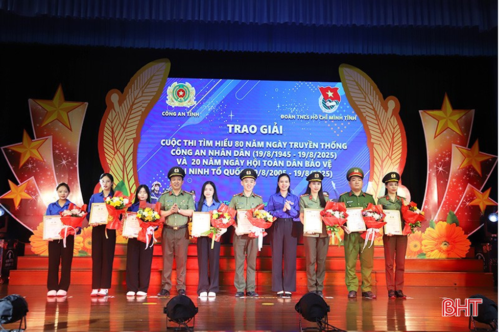 Tại chương trình, Ban Tổ chức đã trao 2 giải nhất, 4 giải nhì, 8 giải ba, 30 giải khuyến khích cho các cá nhân, tập thể xuất sắc cuộc thi tìm hiểu 80 năm ngày truyền thống Công an Nhân dân và 20 năm Ngày hội toàn dân bảo vệ an ninh Tổ quốc. Ban Tổ chức cũng đã lựa chọn các bài thi xuất sắc nhất gửi tham dự vòng thi cấp Trung ương, kết quả Hà Tĩnh có 2 cá nhân và tập thể đạt giải.