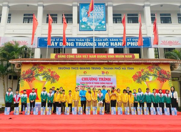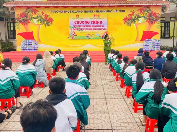 Sáng ngày 23/1, Câu lạc bộ Tư vấn, trợ giúp trẻ em cấp tỉnh phối hợp Hội đồng Đội thành phố Hà Tĩnh tổ chức Chương trình “Tuyên truyền về phòng chống pháo nổ và tác hại của thuốc lá điện tử” tại trường THCS Quang Trung.