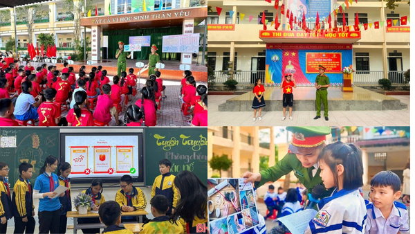 Tổ chức Diễn đàn xây dựng tình bạn đẹp - Nói không với bạo lực học đường bằng hình thức sân khấu hóa Song song với công tác tuyên truyền trực tiếp, hai ngành đã phối hợp chỉ đạo tổ chức Đoàn, Công an các đơn vị, địa phương phối hợp với nhà trường triển khai nhiều mô hình mới, sáng tạo, mang tính lâu dài, trong đó tiêu biểu là mô hình “Mỗi thanh thiếu nhi là một tuyên truyền viên”. Đây không chỉ là một sáng kiến mang tính hình thức mà thực sự đã khẳng định được giá trị thực tiễn khi biến các bạn thành những “hạt nhân lan tỏa” kiến thức pháp luật trong cộng đồng. Theo đó, sau mỗi giờ ngoại khóa, các bạn không chỉ tiếp thu kiến thức cho riêng mình mà còn có trách nhiệm chia sẻ lại những điều đã học với bạn bè, người thân trong gia đình, thậm chí là hàng xóm, cộng đồng xung quanh. Chính sự lan tỏa tự nhiên, gần gũi ấy đã góp phần đưa kiến thức pháp luật đi vào đời sống xã hội một cách hiệu quả, nhẹ nhàng và bền vững.