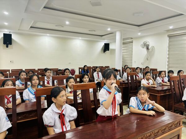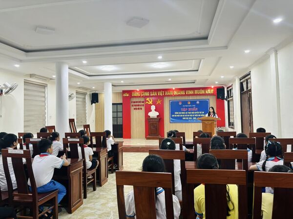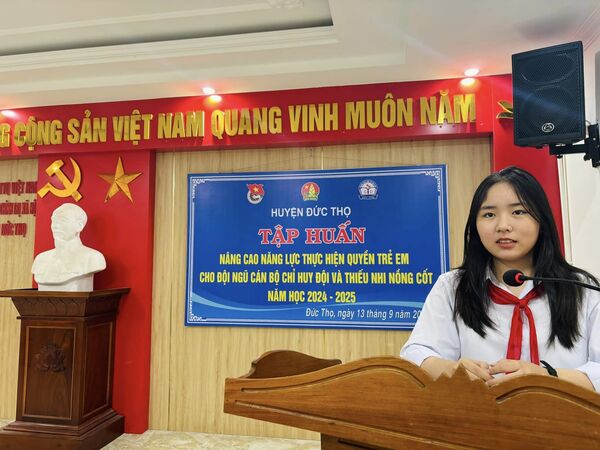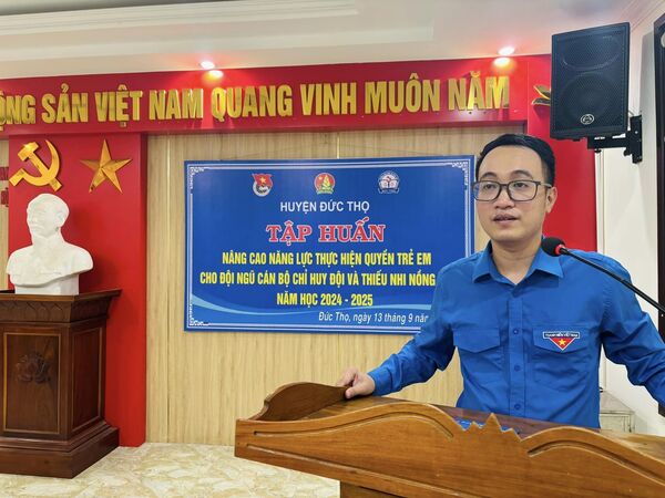 Đồng chí Nguyễn Tuấn Anh phó bí thư huyện Đoàn, chủ tích Hội đồng Đội huyện phát biểu tại buổi tập huấn. Theo đó, Lớp tập huấn đã trang bị cho 34 cán bộ chỉ huy Đội nòng cốt, tiêu biểu các nội dung có liên quan đến quyền và bổn phận của trẻ em được quy định trong Luật trẻ em 2016 cũng như cách phát biểu ý kiến của bản thân, cách thu thập và tổng kết các ý kiến của các bạn xung quanh. Tập huấn cho đội ngũ thiếu nhi nòng cốt các mô hình thúc đẩy quyền tham gia của trẻ em vào các vấn đề liên quan đến trẻ em, nâng cao năng lực thực hiện quyền trẻ em cho đội ngũ chỉ huy Đội và thiếu nhi nòng cốt.