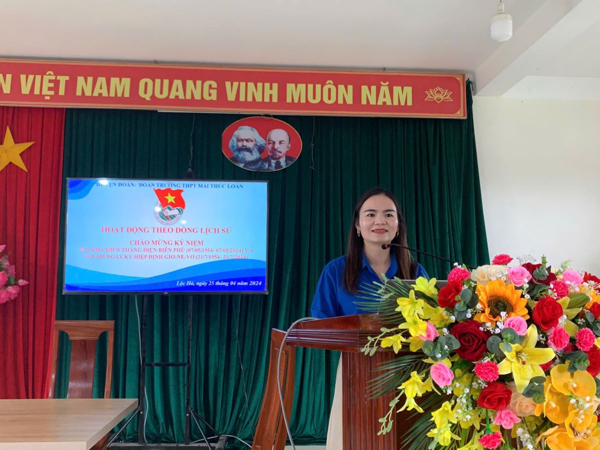 Ngày 25/4, Huyện đoàn Lộc Hà phối hợp với Ban Chỉ huy quân sự huyện, Đoàn Trường THPT Mai Thúc Loan tổ chức hoạt động "Theo theo dòng lịch sử" kỷ niệm 70 năm Chiến thắng Điện Biên Phủ; 70 năm ngày ký hiệp định Giơ-ne-vơ về đình chỉ chiến sự ở Việt Na