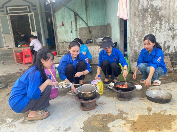 Các bạn ĐVTN cùng nhau chuẩn bị bữa cơm