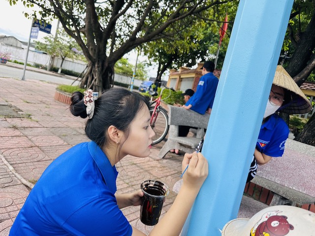 Tuyến đường với tổng chiều dài hơn 500m được triển khai trên trục đường Mai Thúc Loan tại tổ dân phố Lê Lợi. Tại buổi ra quân thực hiện, cán bộ, đoàn viên, thanh niên đã tiến hành phát dọn vệ sinh, cắt tỉa hàng rào xanh, sơn sửa lại hệ thống cột điện đèn cao áp, quét vôi lại các tuyến hàng rào 02 bên đường...Đồng thời tổ chức tuyên truyền cho người dân sinh sống tại khu vực nâng cao ý thức bảo vệ môi trường, hạn chế sử dụng rác thải nhựa… Điểm đặc biệt của tuyến đường này là hệ thống các cột điện cao áp đã được các bạn Đoàn viên thanh niên vẽ và trang trí bằng các loại cây, hoa, góp phần tạo cảm giác thân thiện và đầy màu sắc.