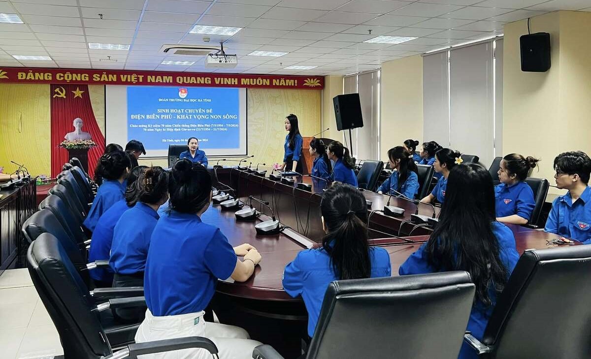 Ngày 04/5/2024, Đoàn Thanh niên Trường Đại học Hà Tĩnh tổ chức chương trình sinh hoạt chính trị với chuyên đề “Điện Biên Phủ - Khát vọng non sông”. Đây cũng là hoạt động thiết thực chào mừng kỷ niệm 70 năm Ngày Chiến thắng Điện Biên Phủ (7/5/1954 – 7/5/2024); hướng tới kỷ niệm 70 năm Ngày ký Hiệp định Giơ-ne-vơ (21/7/1954-21/7/2024).