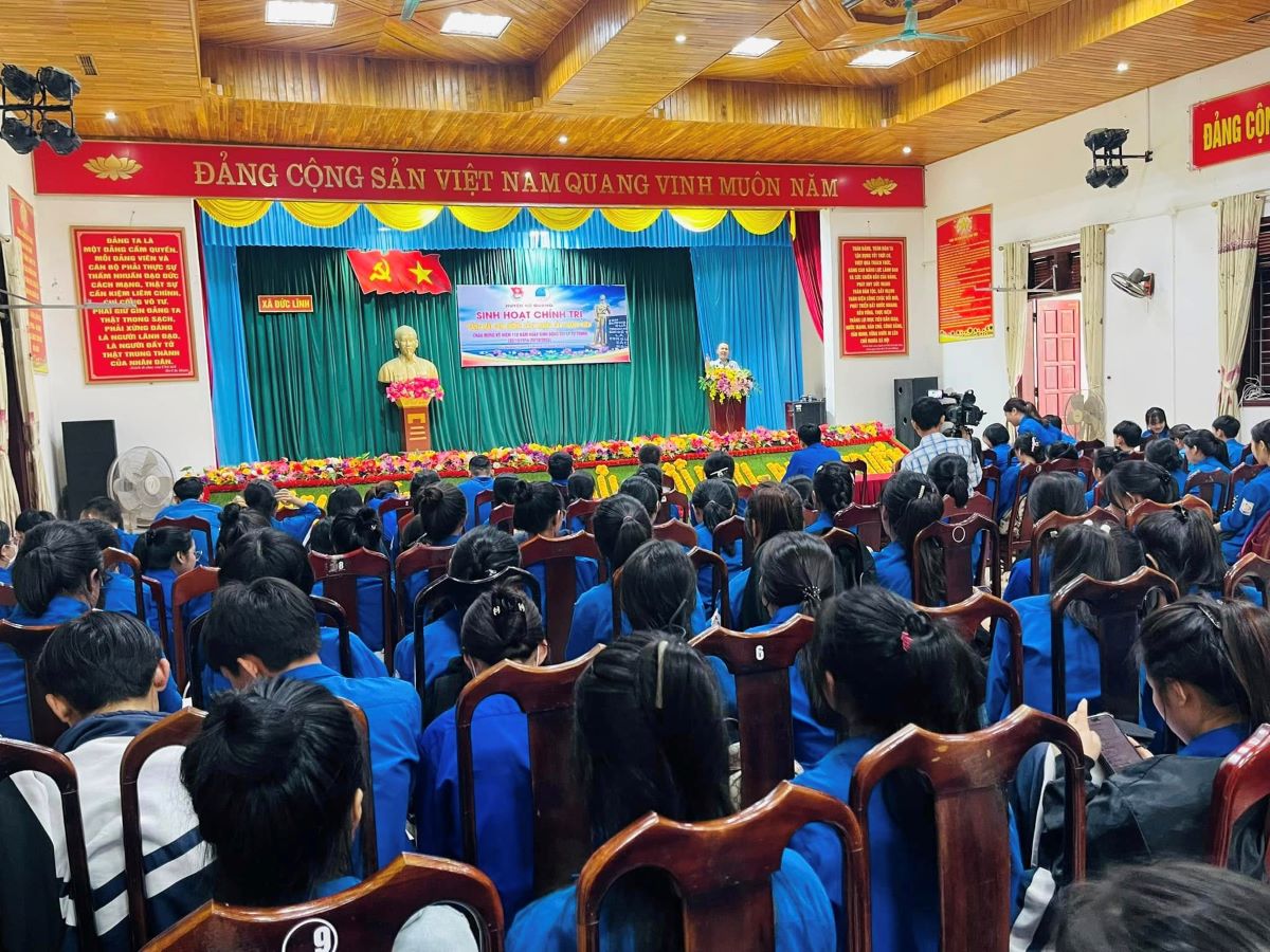 Tham dự chương trình có đồng chí Dương Thanh Hải - Phó Trưởng Ban Tuyên giáo Huyện ủy, đồng chí Nguyễn Thị Thanh Lương - Ủy viên Ban Thường vụ, Chủ tịch Ủy ban Mặt trận Tổ quốc xã, đại diện lãnh đạo Đảng ủy xã Đức Lĩnh; thầy giáo Hoàng Mạnh Hùng - Phó Hiệu trưởng Trường THPT Cù Huy Cận, cùng gần 200 cán bộ và đoàn viên thanh niên trên toàn huyện.