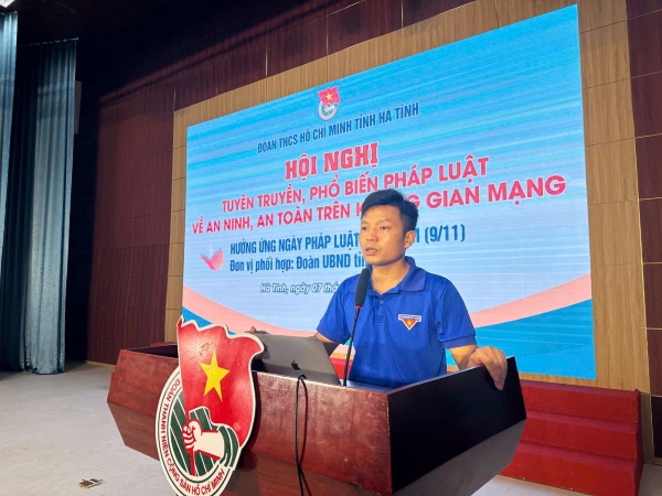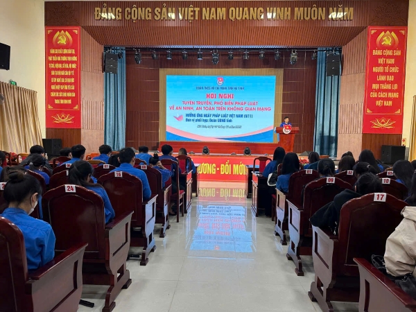 Hưởng ứng Ngày pháp luật (9/11), chiều ngày 7/11, tại Trường Cao đẳng Y tế Hà Tĩnh, Ban Thường vụ Tỉnh đoàn tổ chức Hội nghị tuyên truyền, phổ biến pháp luật về an ninh, an toàn trên không gian mạng cho đoàn viên, thanh niên, sinh viên trên địa bàn tỉnh.