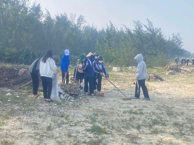 Ngay sau lễ phát động, lực lượng đoàn viên, thanh niên nhanh chóng tỏa đi các tuyến đường, khu dân cư, khu vực chợ và khuôn viên trụ sở làm việc để thu gom rác thải, làm sạch biển, phát quang bụi rậm, đồng thời trồng và chăm sóc cây xanh tại các điểm công cộng. Không khí lao động diễn ra sôi nổi, khẩn trương, thể hiện tinh thần xung kích, trách nhiệm và nhiệt huyết của tuổi trẻ Kỳ Anh vì một môi trường xanh – sạch – đẹp.