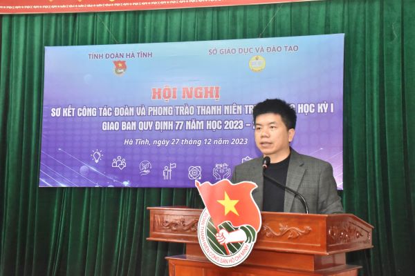 Đồng chí Nguyễn Viết Hải Đăng - Phó Bí thư Tỉnh đoàn phát biểu tại Hội nghị
