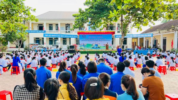 Tham dự có đồng chí Nguyễn Văn Linh – Bí thư Huyện đoàn, các đồng chí Lãnh đạp UBND Huyện, các bạn đoàn viên thanh niên và hơn 500 em học sinh tiểu học thị trấn