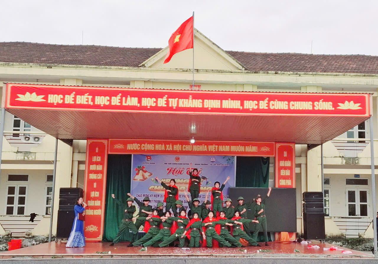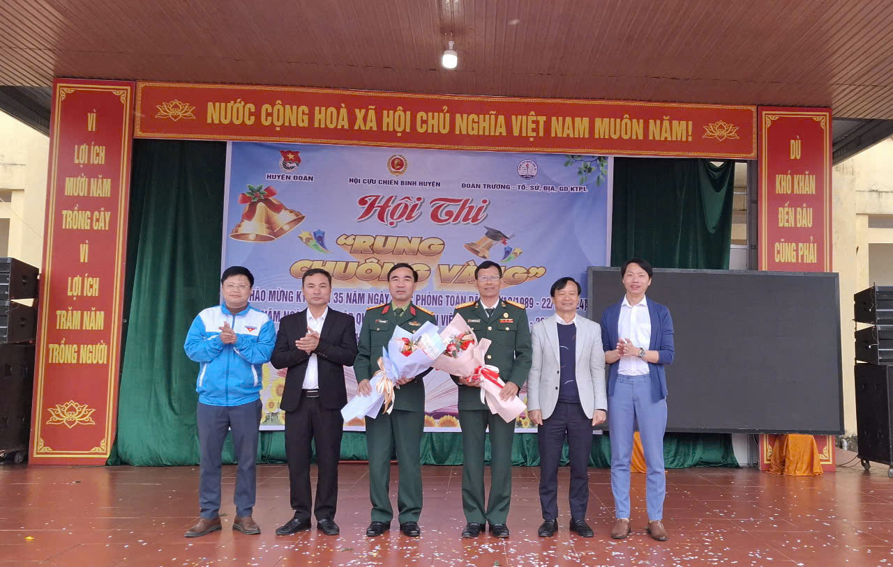 Cũng tại hội thi, Huyện đoàn, BGH nhà trường có bó hoa tươi thắm chúc mừng hai bác Nguyễn Ngọc Tiến, Chủ tịch Hội Cựu Chiến binh huyện và thượng tá Nguyễn Văn Thành, Chính trị viên BCH Quân sự huyện nhân kỷ niệm 80 năm của QĐND Việt Nam (22/12/1944 - 22/12/2024) và 35 năm ngày QPTD (22/12/1989 - 22/12/2024) và 35 năm ngày thành lập Hội Cựu chiến binh Việt Nam