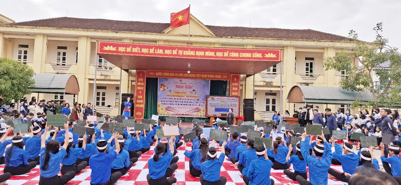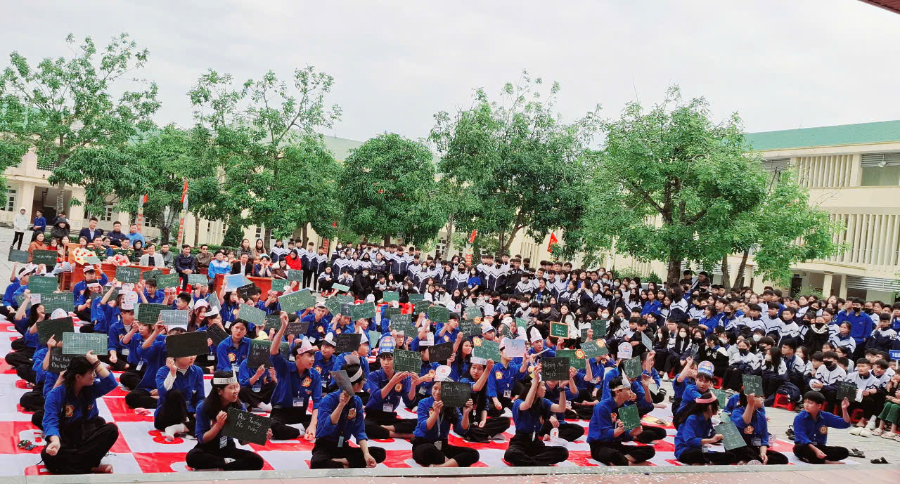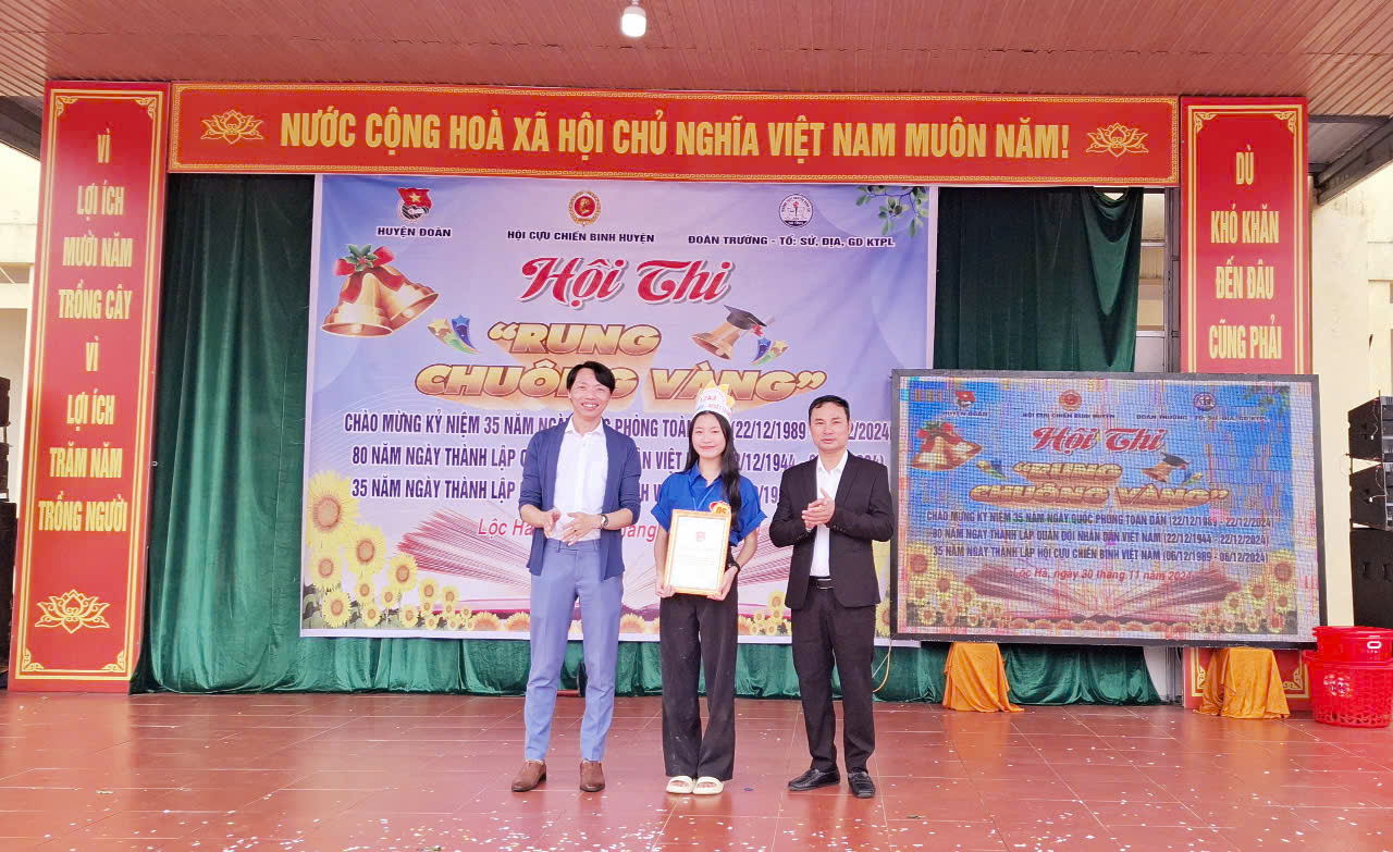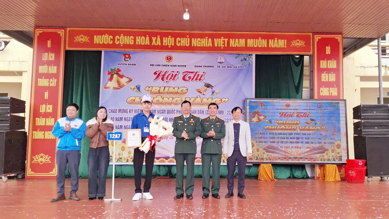 Tại chương trình Hội thi “ Rung chuông vàng” thu hút 100 đoàn viên thanh niên tham gia. Các thí sinh lần lượt cùng trả lời các câu hỏi do Ban tổ chức đưa ra với các nội dung phong phú, đa dạng xoay quanh các kiến thức về giáo dục quốc phòng – an ninh; Quân đội nhân dân Việt Nam,... với thời gian suy nghĩ và trả lời cho mỗi câu hỏi là 10 giây bằng hình thức trắc nghiệm và loại trực tiếp. Qua 24 câu hỏi, BTC đã tìm ra thí sinh xuất sắc nhất "Rung chuông vàng" giành vòng nguyệt quế đó là bạn Hoàng Văn Đức, chi đoàn 12A7 và em Lê Thị Lan Anh, chi đoàn 12A3 đạt á quân hội thi.