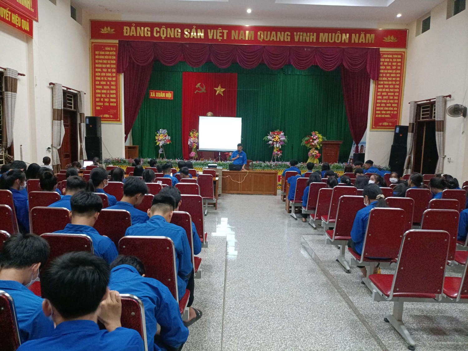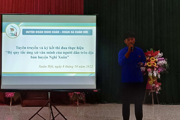 Đồng chí Phó bí thư Đoàn xã Xuân hội trình bày một số nội dung trong quy tắc ứng xử của thanh niên nơi công cộng