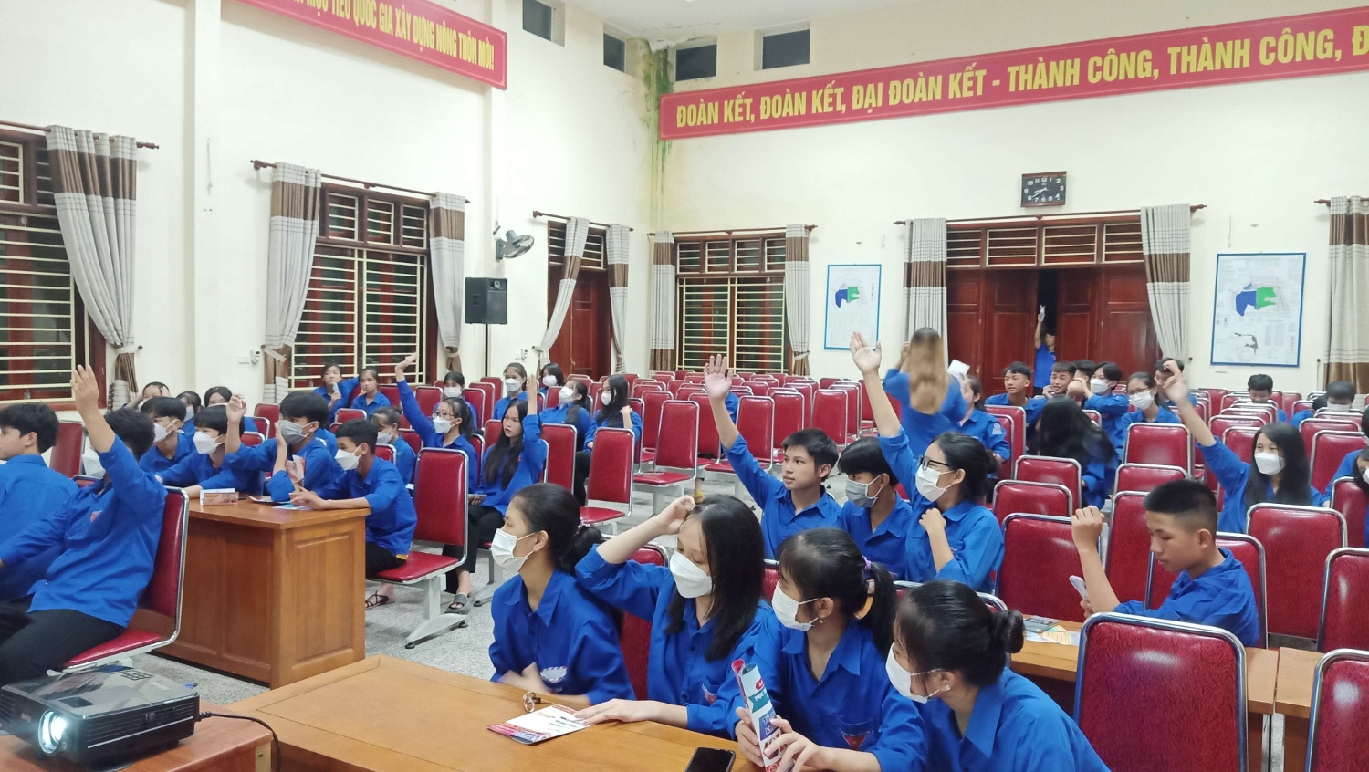 ĐVTN hăng say giơ tay phát biểu trả lời câu hỏi nội dung liên quan đến bộ quy tắc