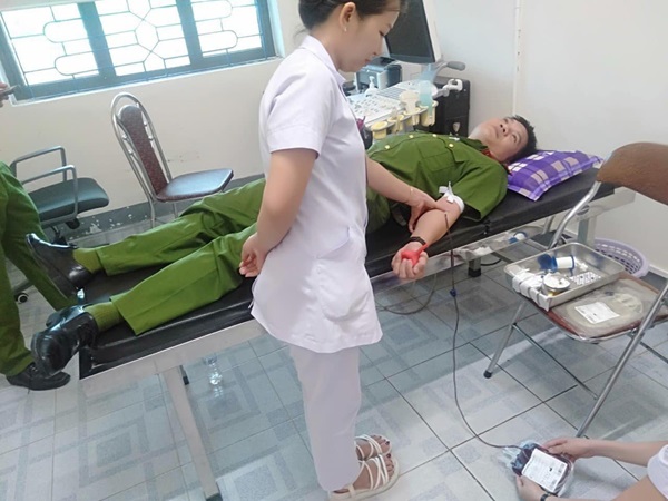 Đồng chí Đại úy Phan Văn Luận, thành viên CLB tham gia hiến máu cứu người tại bệnh viên Đa khoa huyện Thạch Hà vào tối ngày 20/4/2023