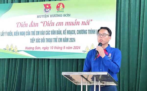 Sáng 10/9, tại Trường Tiểu học thị trấn Phố Châu, Huyện đoàn, Hội đồng Đội huyện Hương Sơn tổ chức diễn đàn "Điều em muốn nói", lấy ý kiến, kiến nghị của trẻ em vào các văn bản, kế hoạch, chương trình liên quan; tiếp xúc đối thoại giữa đại biểu HĐND huyện, lãnh đạo các phòng ban cấp huyện với trẻ em năm 2024 với sự tham gia của hơn 200 học sinh các trường tiểu học, THCS trên địa bàn.
