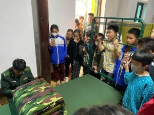 Sau Chương trình, ngày 30/3/2025, Liên đội đã triển khai hoạt động trải nghiệm thực tế, tham quan, học tập tại cơ quan Đồn Biên phòng Bản Giàng tại xã Hương Vĩnh