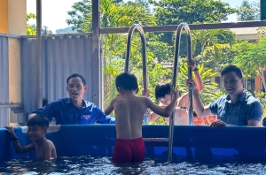 …và cũng được tập luyện thực tế với bể bơi được xây dựng vừa quaThực tế cho thấy, việc trang bị cho các em thanh thiếu nhi những kỹ năng ứng phó khi gặp sự cố, đặc biệt là các em học sinh ở nông thôn, điều kiện kinh tế khó khăn vẫn cần được quan tâm nhiều hơn. Vì vậy, ngoài việc tăng cường quản lý con em, học sinh thì việc rèn luyện, bồi dưỡng những kỹ năng cơ bản cho cuộc sống là điều hết sức cần thiết.