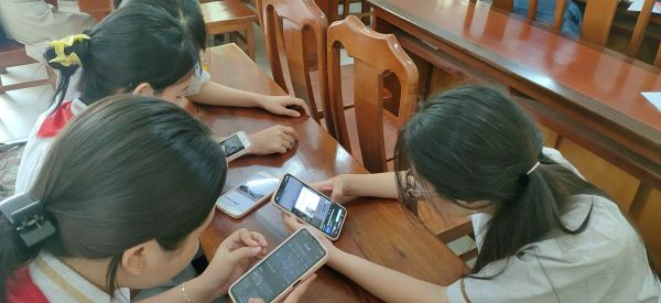 Các em thiếu nhi thực hiện các quy trình quay phim, vận dụng các ứng dụng, phần mềm dựng các video dự thi...