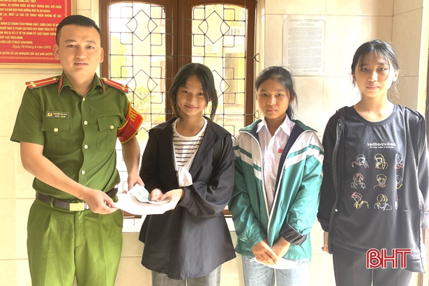 Khoảng 8h50 phút sáng 23/5, trên đường đến Công an huyện Hương Sơn làm thủ tục cấp định danh điện tử, em Nguyễn Thị Uyên (SN 2007), Phạm Khánh Ly (SN 2007) và em Trần Thị Minh Hạ (SN 2007), đều là học sinh lớp 9E - Trường THCS Nguyễn Khắc Viện phát hiện 1 xấp tiền rơi (1.172.000 đồng) tại đoạn đường thuộc TDP 5, thị trấn Phố Châu, Hương Sơn.