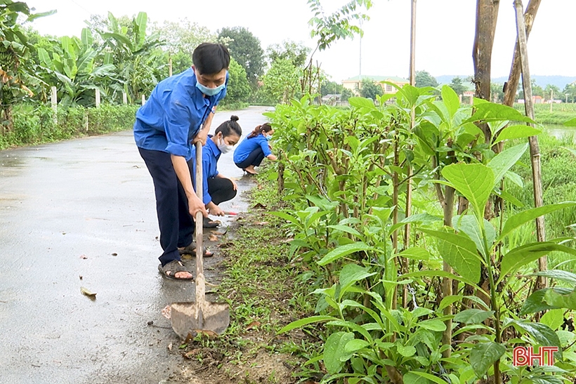 Anh Hiệu cùng các ĐVTN trong chi đoàn tham gia xây dựng nông thôn mới tại địa phương.
