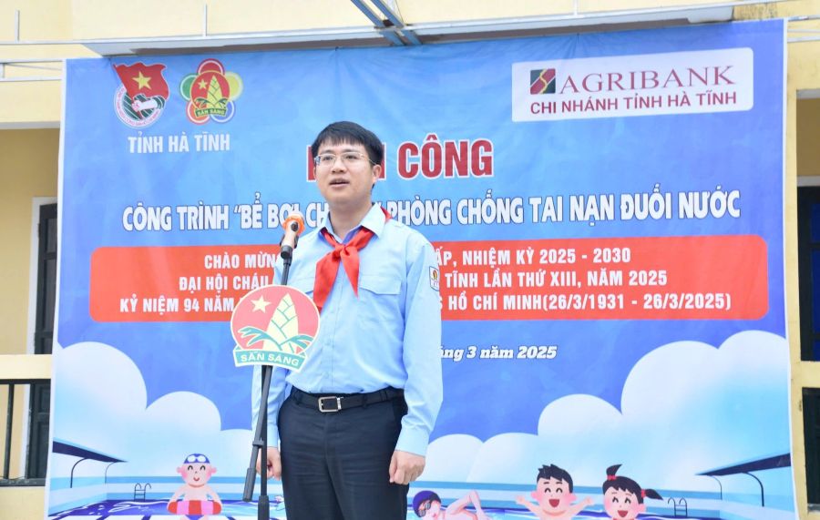 Sáng ngày 13/3, Tỉnh đoàn, Hội đồng Đội tỉnh phối hợp Ngân hàng Vietcombank chi nhánh Hà Tĩnh và Ngân hàng Agribank chi nhánh Hà Tĩnh khởi công xây dựng 02 Công trình “Bể bơi cho em” phòng chống tai nạn đuối nước tại Trường Tiểu học Sơn Trung, huyện Hương Sơn và Trường Tiểu học Hòa Lạc, huyện Đức Thọ. Tham dự Chương trình có đồng chí Nguyễn Ny Hương, Ủy viên BTV Trung ương Đoàn, Bí thư Tỉnh đoàn; Ông Phan Viết Phong, Giám đốc Ngân hàng TMCP Ngoại thương Việt Nam chi nhánh Hà Tĩnh; đại diện Thường trực Tỉnh đoàn, Hội đồng Đội tỉnh, Lãnh đạo Sở Giáo dục Đào tạo, Ngân hàng Agribank chi nhánh Hà Tĩnh; đại diện Thường trực Huyện ủy, Lãnh đạo UBND và hơn 300 đội viên, thiếu nhi huyện Hương Sơn, huyện Đức Thọ. Công trình “Bể bơi cho em” tại 2 trường học được xây dựng với tổng nguồn lực 2,5 tỷ đồng với sự đồng hành của Ngân hàng Vietcombank chi nhánh Hà Tĩnh (hỗ trợ 1,5 tỷ đồng), Ngân hàng Agribank chi nhánh Hà Tĩnh (hỗ trợ 1 tỷ đồng).