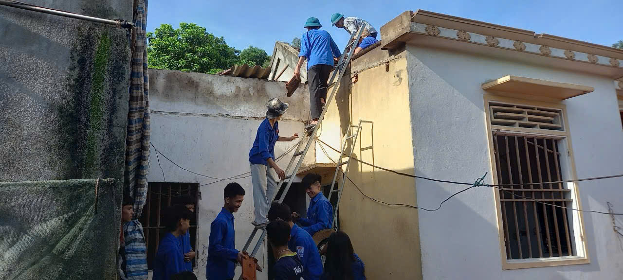 Đoàn viên thanh niên dọn dẹp, chuẩn bị để giải phóng mặt bằng xây dựng Khu lưu niệm AHLS Phan Đình Giót
