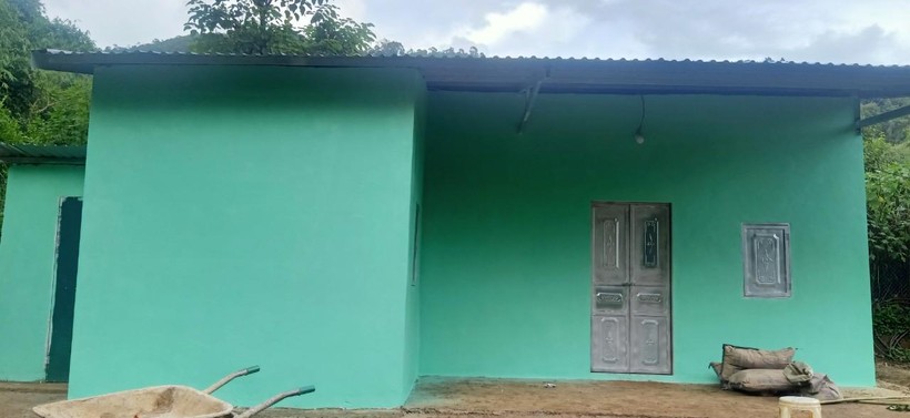 Ngôi nhà xiêu vẹo, lợp ranh, vách thưng bằng sặt và quây bạt của em Vàng Thị Vũ, bản Nậm Manh, xã Nậm Manh, huyện Nậm Nhùn, giờ đây đã được thay thế bởi một “mái ấm” khang trang. Nhà được sơn xanh - màu em yêu thích.