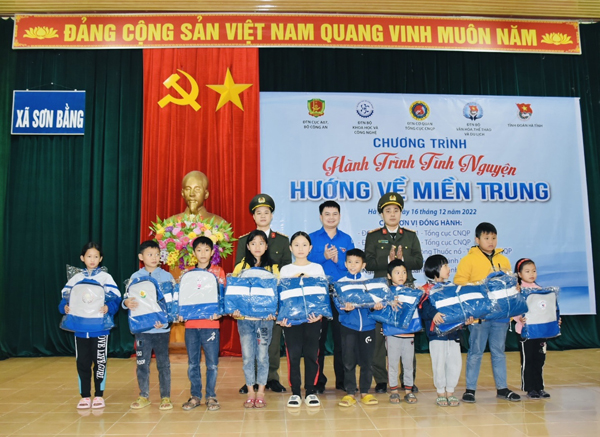 Trước đó, ngày 16/12, thiết thực chào mừng thành công Đại hội Đoàn toàn quốc lần thứ XII, nhiệm kỳ 2022 - 2027; kỷ niệm 78 năm Ngày thành lập Quân đội nhân dân Việt Nam và 33 năm Ngày hội Quốc phòng toàn dân, ngày 16/12, Ban Thường vụ Tỉnh đoàn Hà Tĩnh phối hợp với Đoàn Thanh niên Cơ quan Tổng cục Công nghiệp Quốc phòng; đoàn Thanh niên Bộ Văn hóa, Thể thao và Du lịch; đoàn Thanh niên Bộ Khoa học & Công nghệ; Đoàn cơ sở Cục Ngoại tuyến - Bộ Công an tổ chức chương trình “Hành trình tình nguyện - Hướng về miền Trung”. Tại chương trình, đoàn đã trao tặng thiết bị dạy học thông minh tích hợp camera 360 độ, bộ học liệu cờ vua cùng với 40 suất học bổng và 100 áo khoác ấm cho các em học sinh có hoàn cảnh khó khăn tại trường Tiểu học Sơn Kim 1 và Sơn Bằng. Cũng trong chương trình, các y, bác sỹ - Bệnh viện Nam Thăng Long - Hà Nội và Phòng Quân y - Tổng cục Quốc phòng đã tổ chức khám tổng thể đo thị lực mắt, tai mũi học, đo chiều cao cân nặng cho hơn 300 học sinh trường tiểu học Sơn Kim 1. Ngoài ra, đoàn cũng đã trao hỗ trợ chế phẩm sinh học và chuyển giao công nghệ vi sinh cho bà con Nhân dân xã Sơn Bằng.