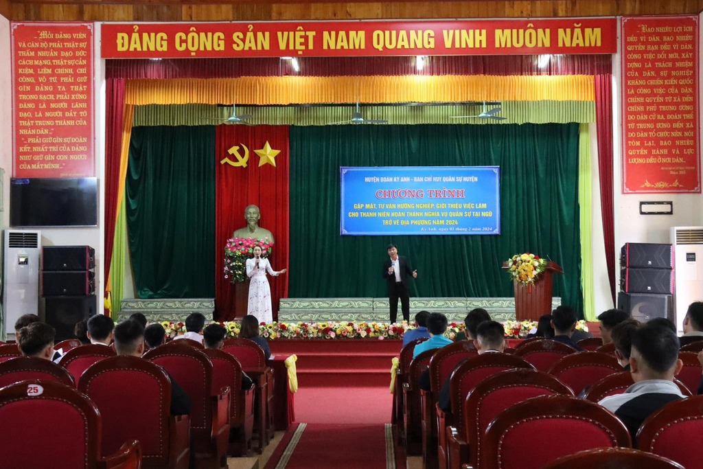 *Ngày 05/2/2024, Huyện Kỳ Anh đã phối hợp Ban Chỉ huy Quân sự huyện tổ chức gặp mặt, tư vấn hướng nghiệp, giới thiệu việc làm cho thanh niên lhoàn thành Nghĩa vụ quân sự trở về địa phương năm 2024.