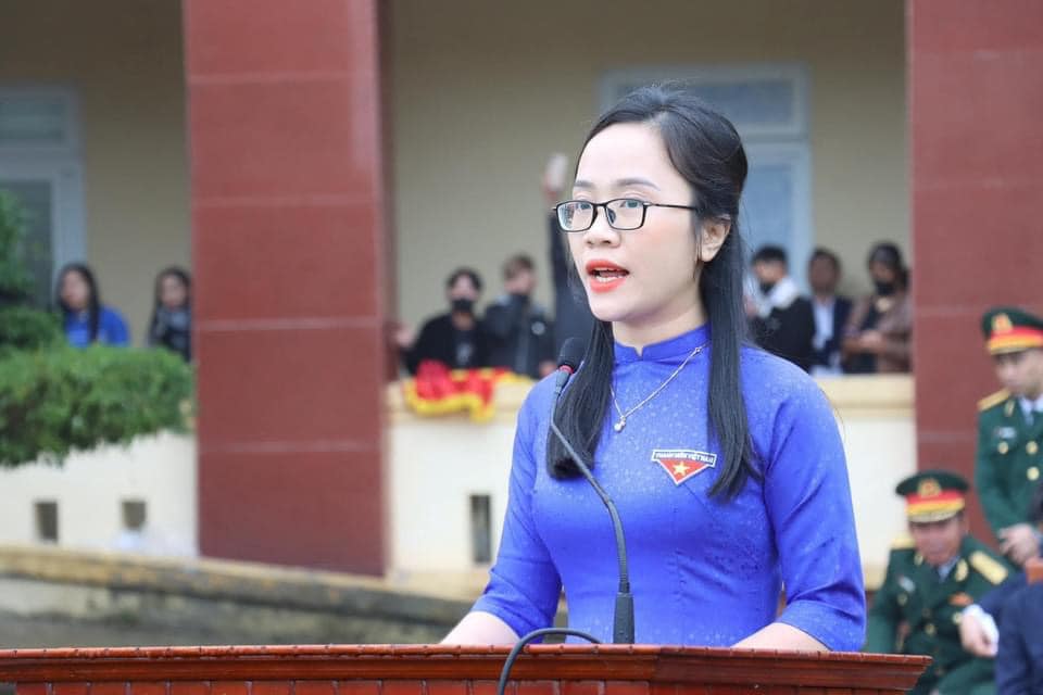 Đồng chí Mai Thị Huyền Trang, UV BCH Tỉnh đoàn, Bí thư Huyện đoàn phát biểu tại buổi lễ