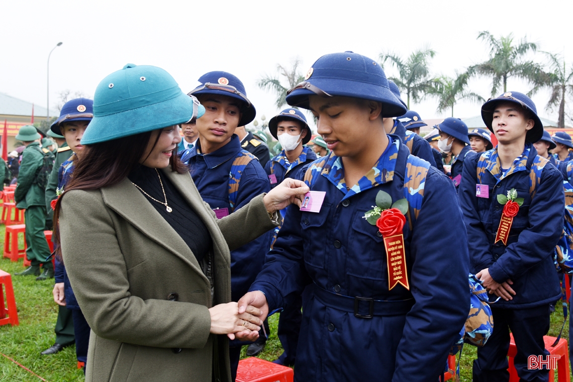 Phó Trưởng ban Tuyên giáo Tỉnh ủy Nguyễn Thị Hà Tân động viên các tân binh lên đường nhập ngũ.