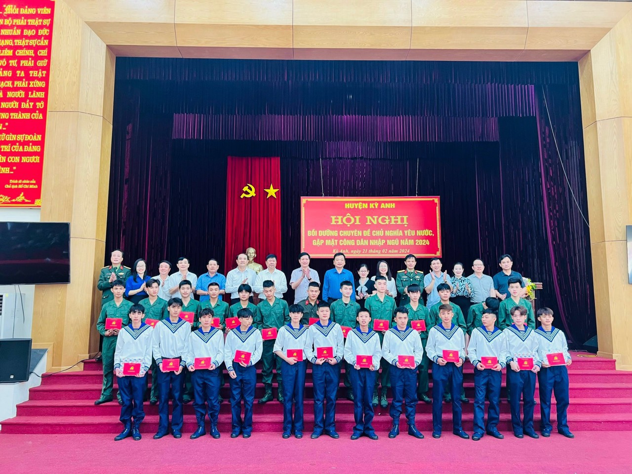 * Trước đó, ngày 21/02/2024, huyện đoàn phối hợp tổ chức Hội nghị Bồi dưỡng Chuyên đề chủ nghĩa yêu nước và Giao lưu gặp mặt Thanh niên lên đường nhập ngũ năm 2024 tại Hội trường UBND huyện Kỳ Anh.