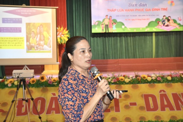 Cũng tại diễn đàn, các gia đình trẻ đã cùng nhau trao đổi về cách thắp lửa hạnh phúc, đồng thời hoà mình vào những trò chơi vui nhộn, thắm đượm sự hiểu biết, gắn kết giữa các thành viên trong các gia đình trẻ. Tại đây, Ban tổ chức cũng đã tặng quà cho các gia đình trẻ tiêu biểu và các học sinh có hoàn cảnh khó khăn trên địa bàn Thị xã Hồng Lĩnh.