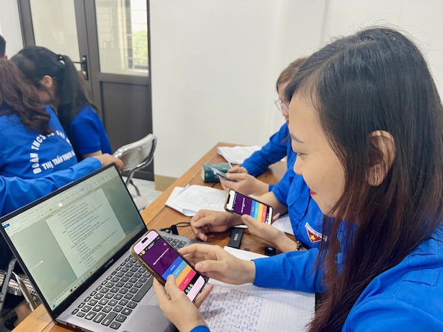 Các thành viên trong CLB hưởng ứng tham gia trả lời các câu hỏi trên ứng dụng Quizz