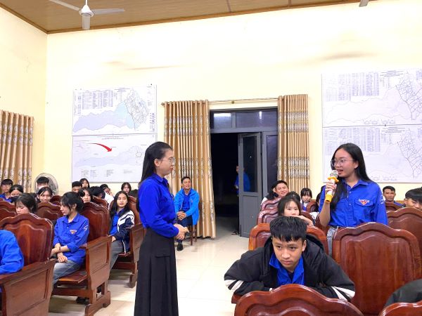 Bên cạnh đó, các bạn đoàn viên thanh niên cũng được lắng nghe những chia sẻ, trao đổi của 2 đồng chí là cán bộ thuộc diện thu hút nhân tài của tỉnh Hà Tĩnh theo Nghị định số 140/2017/NĐ-CP của Chính phủ: Đồng chí Lê Thị Nguyệt, cán bộ thu hút nhân tài, thủ khoa đầu vào và thủ khoa đầu ra xuất sắc; đạt giải Ba nghiên cứu khoa học sinh viên cấp Bộ, đạt danh hiệu Sinh viên 5 tốt cấp Trung ương; đồng chí Bùi Ngọc Ánh, tốt nghiệp xuất sắc chuyên ngành Truyền thông quốc tế Học viện Ngoại giao, đại biểu Hội thảo Khoa học trẻ Việt Nam toàn cầu, đạt giải Ba học sinh giỏi Quốc gia.