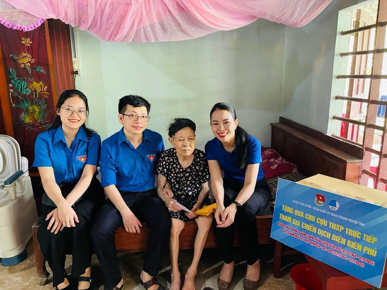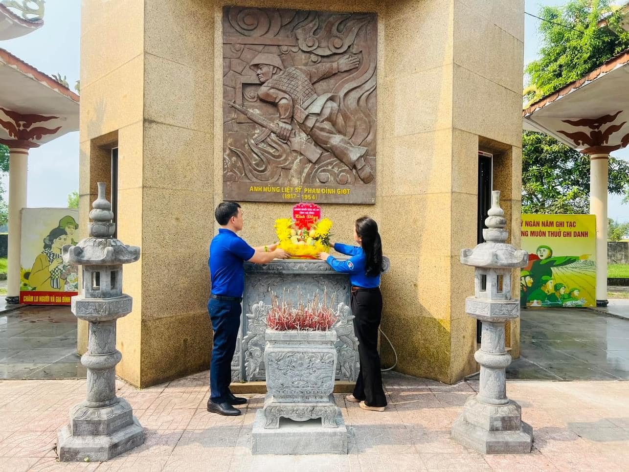 Đoàn đã dâng hương tại Đài tưởng niệm anh hùng liệt sĩ Phan Đình Giót tại Nghĩa trang Liệt sĩ xã Cẩm Quan, huyện Cẩm Xuyên, thể hiện lòng thành kính và tri ân sâu sắc đối với những người đã hy sinh cho Tổ quốc. Tiếp đó, đoàn đã thăm hỏi sức khỏe và tặng quà các cựu thanh niên xung phong trực tiếp tham gia Chiến dịch Điện Biên Phủ, Mẹ Việt Nam Anh hùng và thân nhân của anh hùng liệt sĩ Phan Đình Giót trên địa bàn huyện Cẩm Xuyên. Tổng cộng 10 suất quà, mỗi suất trị giá 500 nghìn đồng, cùng một thùng C sủi vitamin trị giá 1 triệu đồng đã được trao tận tay đến các gia đình.