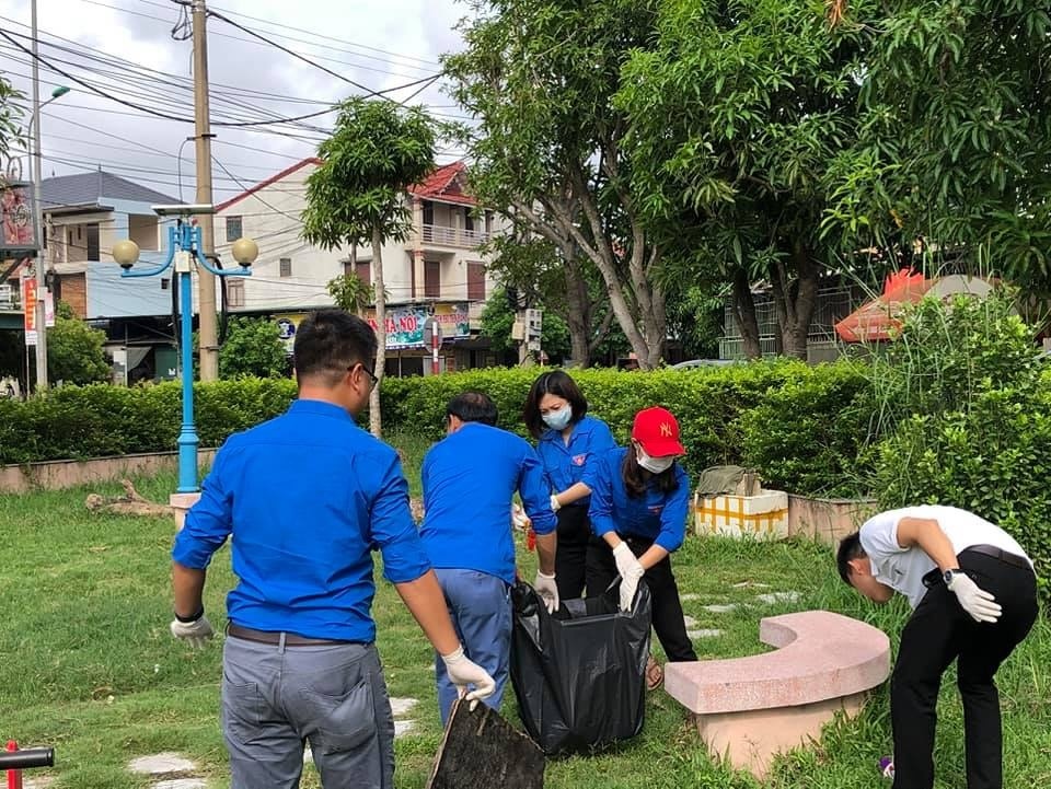 Đoàn viên ra quân dọn vệ sinh tuyến đường xung quanh cơ quan, trụ sở làm việc