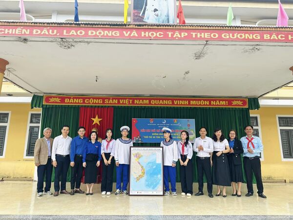 Huyện đoàn - Hội đồng đội Huyện đã trao bản đồ Tổ quốc cho Liên đội hưởng ứng cuộc vận động “Tự hào một dải non sông”